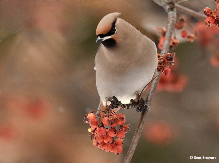 Bohemian Waxwing in Backyhard Mountain Ash