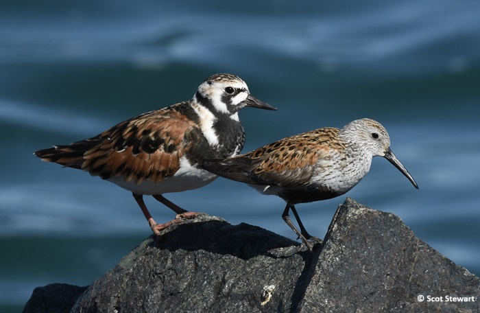 Ruddy Turnstone and Dunlin during Spring Migration at Lower Harbor Breakwall