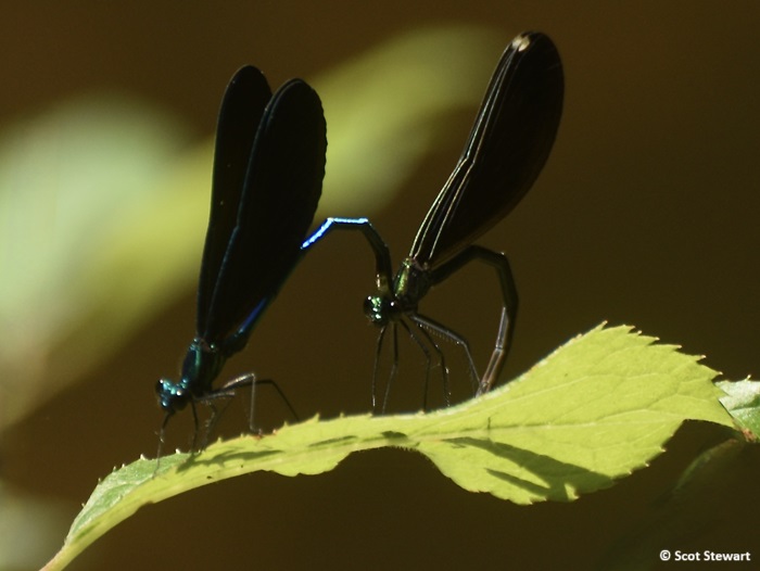 Ebony Jewelwings with Unusual Blue Bodied Male, on Dead River in Marquette