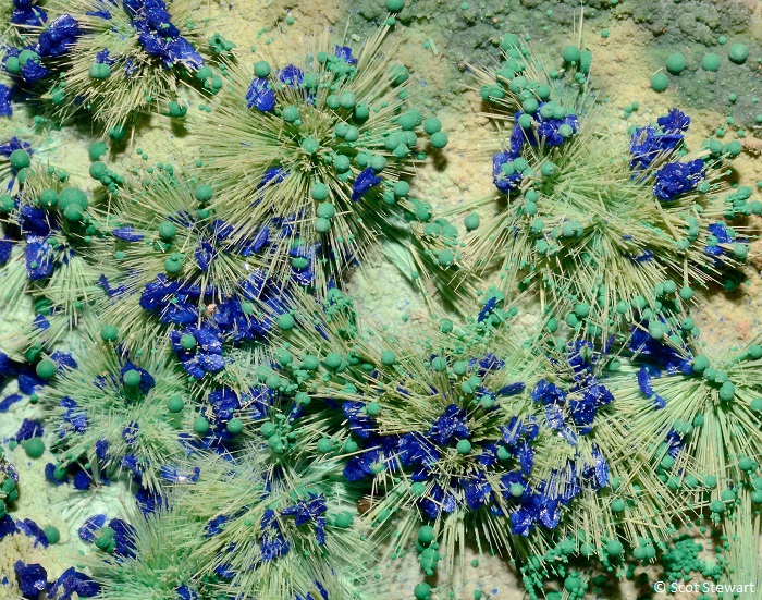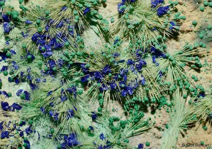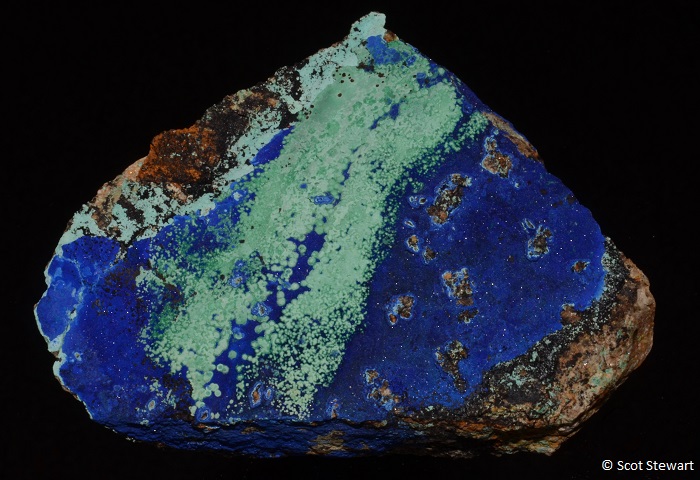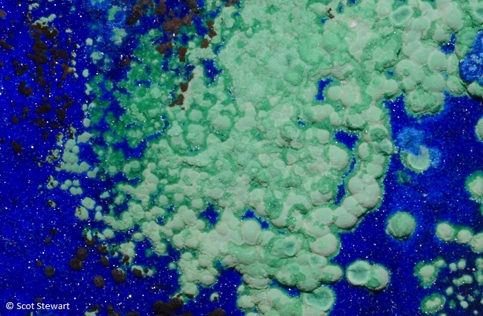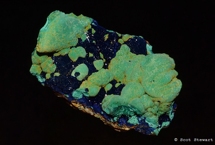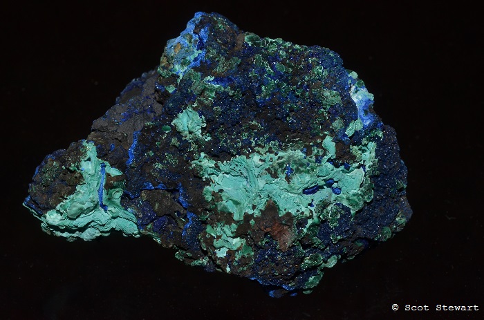 Azurite Cu3(CO3)2(OH)2, II, with Malachite, Morenci Mine, Greenlee, Co., Arizona