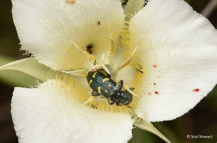 Baker's Mariposa Lily with Ornate Checkered Beetle, Glacier National Park, Montana