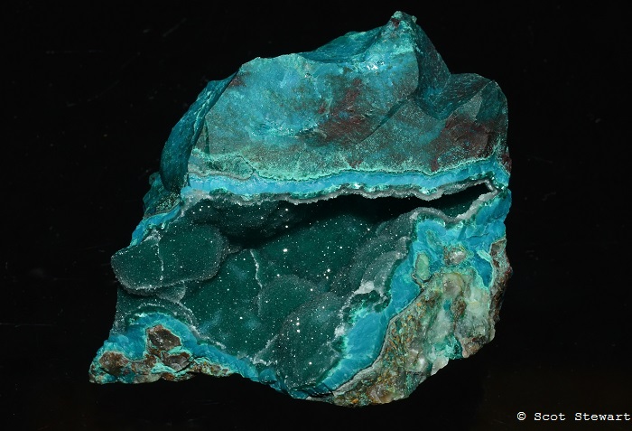 Chrysocolla Cu2-xAlx(H2xSi2O5)(OH)4-nH2O (x<1)11>, with Malachite II, Kolwezi, Katanga, Democratic Republic of Congo, Ex Renaud Vochten