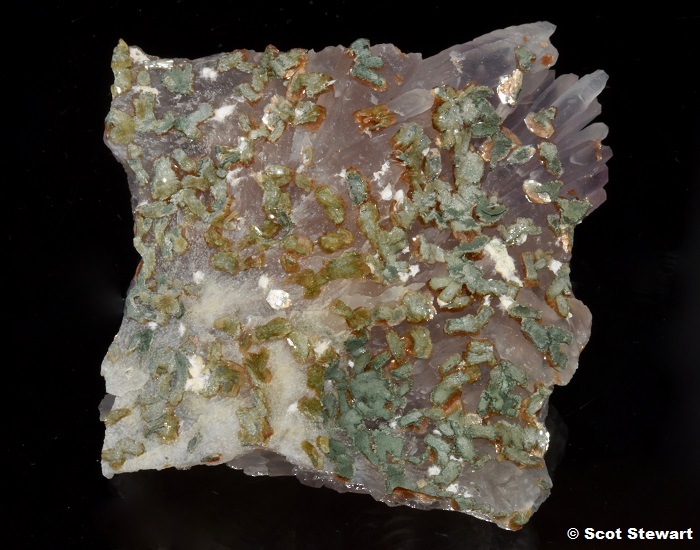 Clinoptilolite (Na,K,Ca)2-3Al3(Al,Si)2Si13O36ยท12H2O CaAl3(PO4)(PO3OH)(OH)6 (Green), with Quartz, Amestita do Sul, Rio Grande do Sul, Brazil
