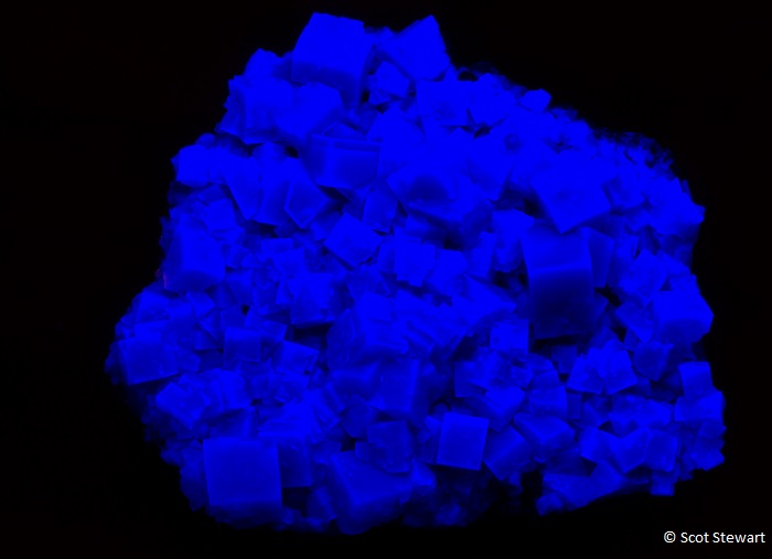 Fluorite CaF2 Under Shortwave UV, Diana Marie Mine, Rogerley Quarry, Frosterley, Stanhope Co., Durham, England