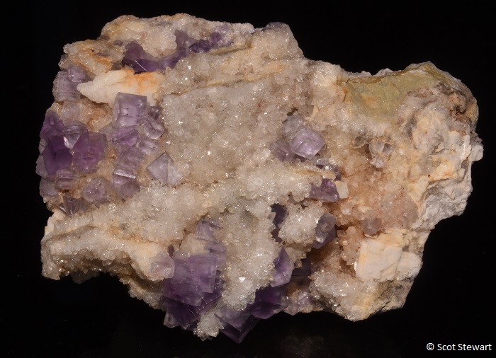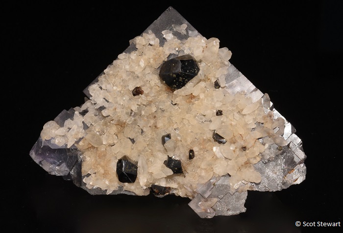 Fluorite CaF2 with Quartz, Bitumen, and Calcite, Rosiclare, Hardin Co., Illinois