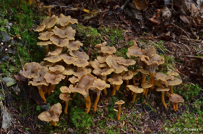 Chanterelles Cantharellus tubaiformis large group, Michigan