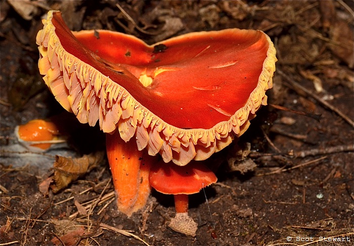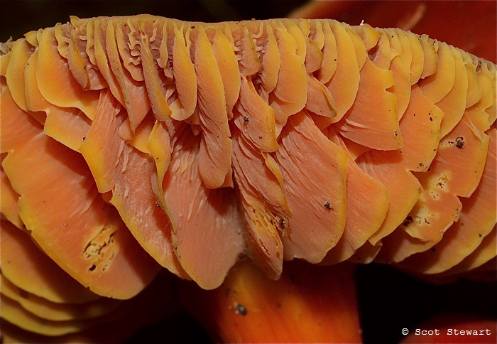 Fading Scarlet Waxy Cap Hygrophorus miniatus detail, Marquette Co., Michigan