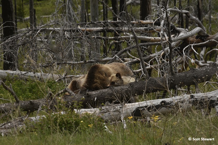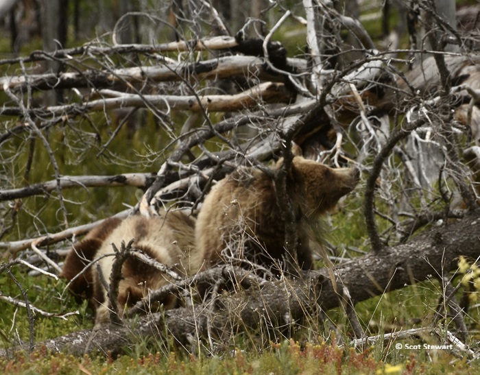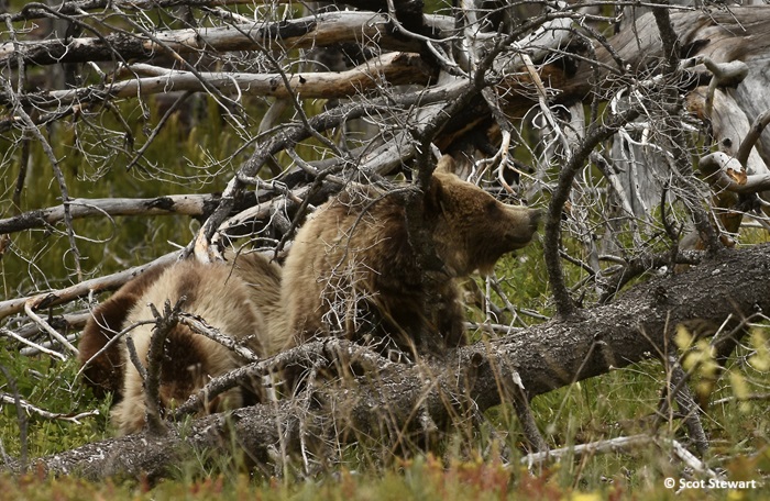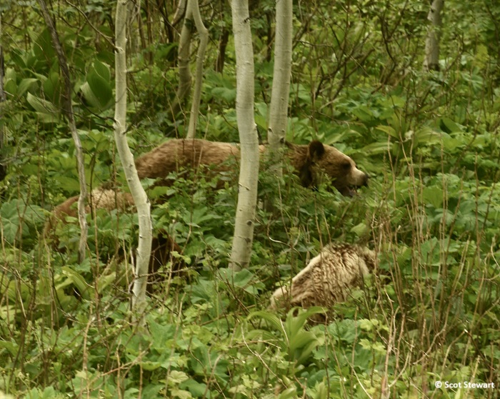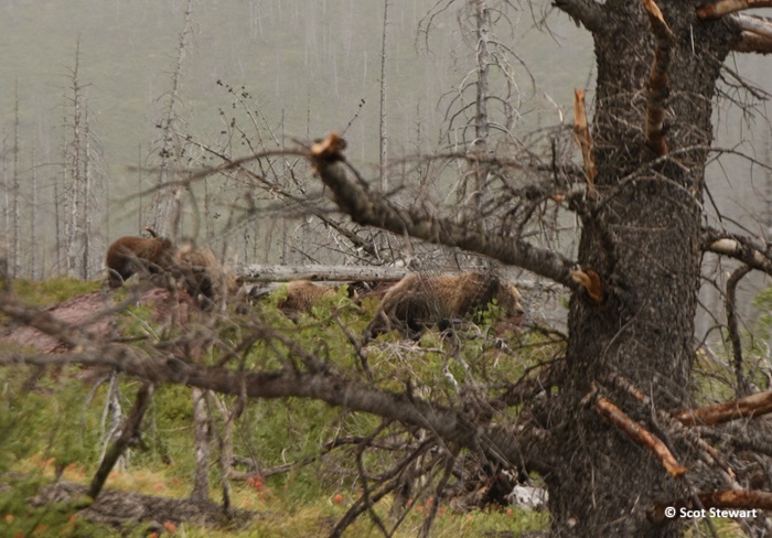 Grizzly Bear Mother with Three Cubs, Park Rangers did a great job of keeping both visitors and bears safe, so pics are quick and of poor quality, Glacier National Park, Montana