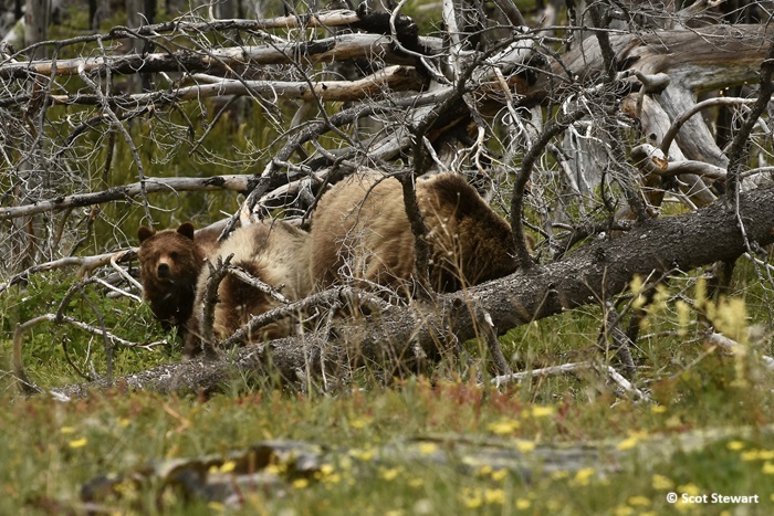 Grizzly Bear Mother with Three Cubs, Glacier National Park, Montana