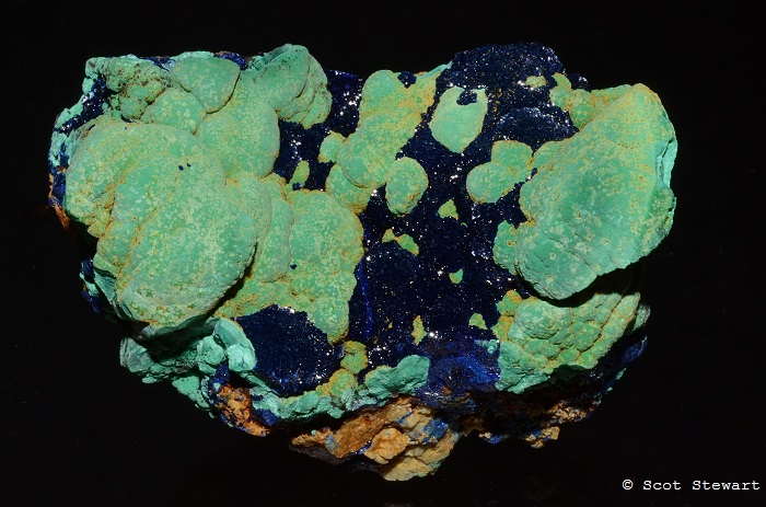 Malachite Cu2CO3(OH)2 with Azurite, Morenci Mine, Grenlee Co, Arizona