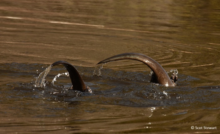 North American River Otter group fishing, Michigan