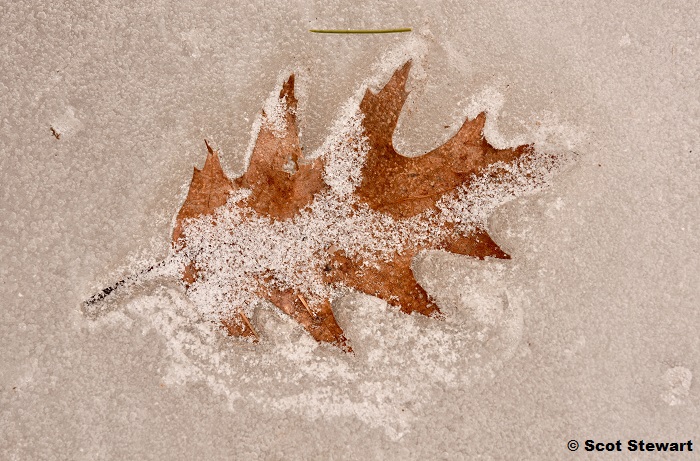 Northern Red Oak Quercus rubra Leaf in Snow, Michigan February