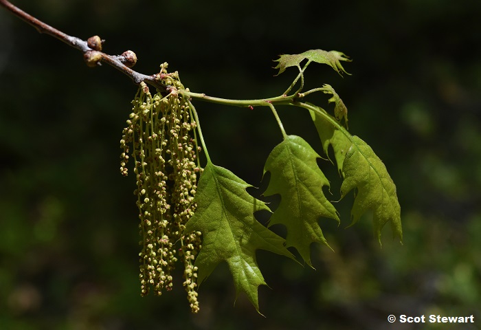 Northern Red Oak Quercus rubra Male Flowers and Acorns, Michigan May