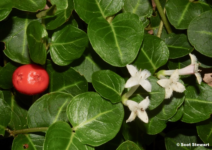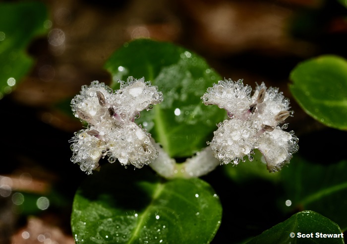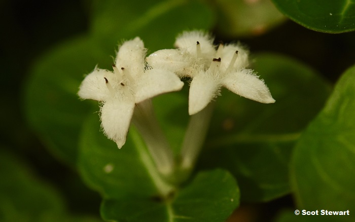 Partridge-Berry Mitchella repens Flowers with Fruit, Michigan July