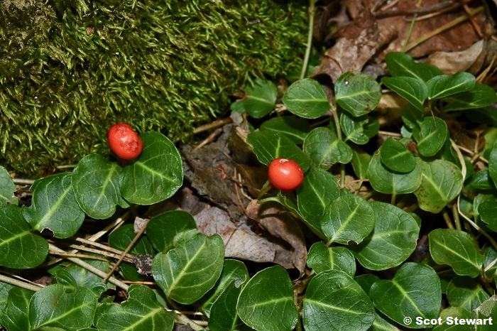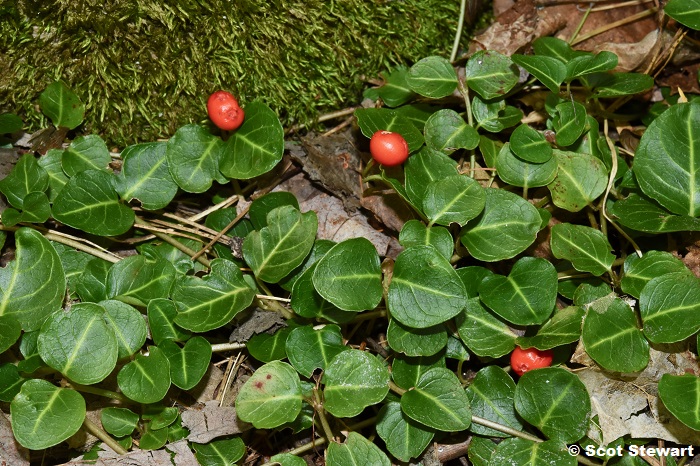 Partridge-Berry Mitchella repens Fruit and Leaves, Michigan May