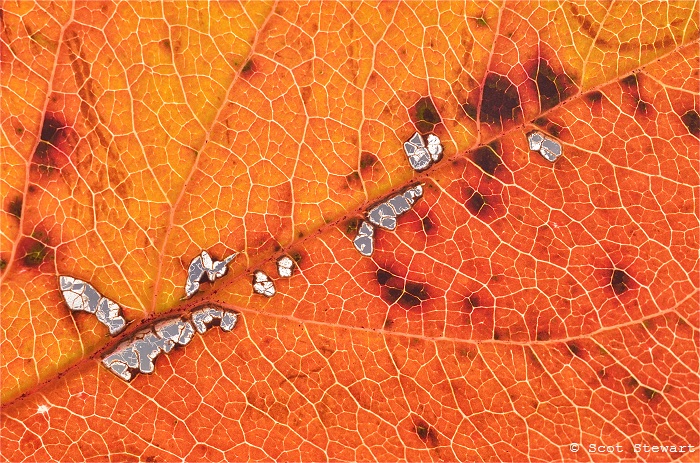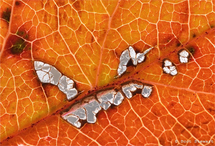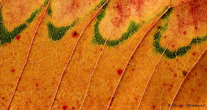 Round-leaved Serviceberry Amelanchier spicata Autumn Leaf Detail with Leaf Skeletonizers, Michigan November