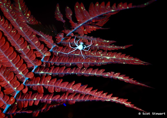 Common Candy-striped Spider on Fern