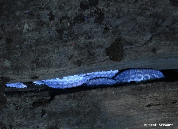 Line of Wood Louses in rotten wood crevice.