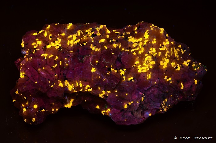 Wollastonite CaSiO3 yellow under Shortwave UV light, Franklin, Sussex Co., NJ, Ex The Schneider Collection